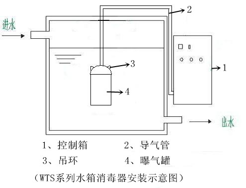 3、使水位超过释能器,并于指定时间接通220V主电源使水箱自洁消毒器开始工作。